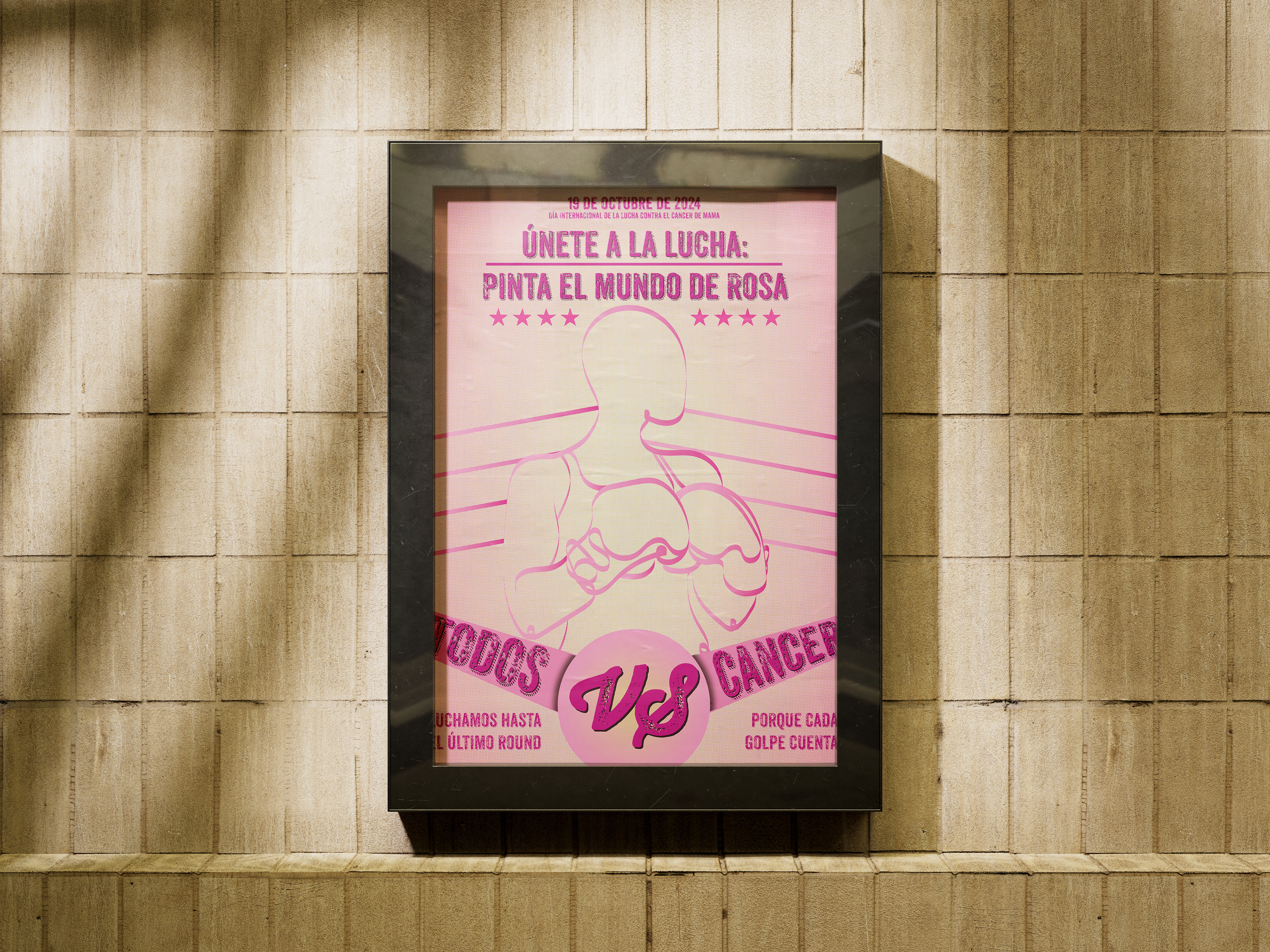 Este fue un póster que realicé para una competencia en la universidad donde hablábamos sobre el cáncer de seno. El mismo fue inspirado por los anuncios de peleas de boxeo de años pasados en las que se veía a los contrincantes acompañados de la sus apellidos y las letras vs en el medio. De igual forma las estrellas eran comunes en estos diseños al igual que una tipografía fuerte. Por otro lado, decidí añadir una textura para dar esa sensación de que es algo un poco antiguo, al igual que la lucha contra el cáncer ya lleva demasiados años en nuestras vidas.